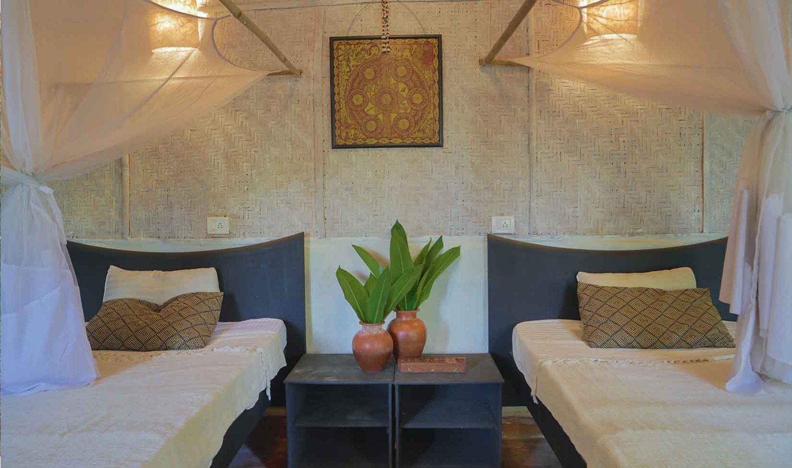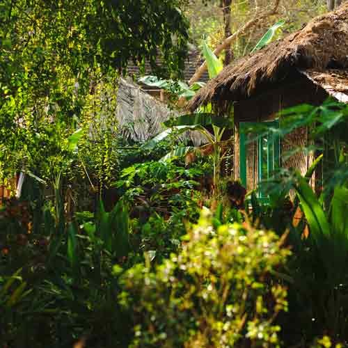 Divided between sitting at the top of the hill and exclusively on the third tier of the property are our deluxe cottages that give you the best view and most privacy. They are perfect for couples or someone looking to treat themselves. Each cottage features a king bed (except one with twin bed), with mosquito net, large adjoined private bathroom, two ceiling fans, curtained windows, and a private covered patio with lounge seating, from where you can enjoy a panoramic view of the jungle, the best sunrise, and feel the full force of the cooling mountain breeze. The cottage on the sixth tier of the property, its placement is metaphorically aligned with the sixth and highest level of enlightenment. You could say waking up here is like waking up in heaven! The Deluxe cottages on the third tier are suitable for elderly people and for those who do not wish to climb each time on the top but get other benefits of a deluxe cottage.